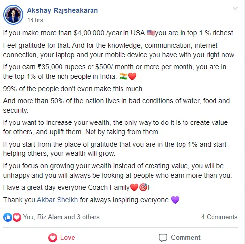 Your goal is solely to increase your wealth without the desire to contribute to the community or others